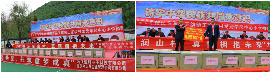“明燈照亮希望、共筑童夢(mèng)成真”,乾元咨詢公司駐村幫扶工作隊(duì)積極聯(lián)系愛心企業(yè)進(jìn)行捐贈(zèng),將溫暖和希望帶到每一個(gè)孩子的身邊。甘肅工程咨詢集團(tuán)乾元咨詢公司協(xié)同中國(guó)公益記錄者在線和中華志愿者協(xié)會(huì)為龍?jiān)獙W(xué)區(qū)中心小學(xué)捐贈(zèng)圖書館1座;浙江迪科電子科技有限公司董事長(zhǎng)朱相斌先生捐贈(zèng)價(jià)值3萬(wàn)元的護(hù)眼臺(tái)燈150盞;重慶眾志晟企業(yè)管理咨詢有限公司執(zhí)行董事張娟女士捐贈(zèng)價(jià)值2萬(wàn)元小學(xué)生課外書籍666套等。這份禮物帶給孩子們不僅僅是節(jié)日的祝福,還有滿滿的愛與感動(dòng)。企業(yè)家代表向孩子們致以節(jié)日的問候,鼓勵(lì)孩子們奮發(fā)學(xué)習(xí),自立自強(qiáng),做一個(gè)對(duì)國(guó)家、對(duì)社會(huì)有用的人。校領(lǐng)導(dǎo)和企業(yè)家代表還一同為優(yōu)秀少先隊(duì)員、三好學(xué)生、優(yōu)秀班干部、優(yōu)秀少先隊(duì)輔導(dǎo)員頒發(fā)獎(jiǎng)狀、獎(jiǎng)品,勉勵(lì)大家以先進(jìn)為榜樣,奮勇拼搏,再創(chuàng)佳績(jī)!