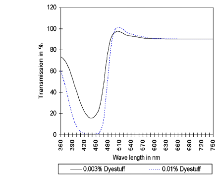 No staining of distilled water, 2.0% by weight acetic acid, 10.0% by volume ethanol, coconut oil or peanut oil in our test on 0.1% dyeing of PS, ABS, SAN, PMMA, PC and rigid PVC. (The tests used saturated strips of filter paper for 5 hours at 50 °C).