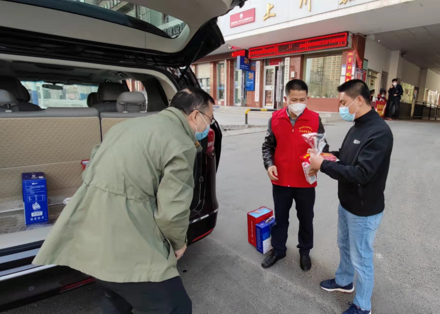 每到一個社區(qū)志愿服務點,陳啟和都詳細詢問了志愿者工作開展情況及用餐保障情況,并為志愿者送上保溫杯、食品和水果。來到萊茵小鎮(zhèn)小區(qū)時,正趕上上午全員核酸工作結束。一身“清涼”打扮的王賢亮,在捂得嚴嚴實實的人群中顯得格外亮眼。因為工作時還要套上防護服,即使天氣冷,他也只能身著單衣。透過口罩,依然能感受到他陽光燦爛的笑容,和在工作崗位上做技術質量服務、工會工作時一個樣兒。辦公室的曹陽在封控小區(qū)參與志愿服務,承擔著核酸檢測、為封管居民配送生活必需品和數(shù)據(jù)統(tǒng)計上報等工作,每天一棟樓一棟樓的登記,挨家挨戶的排查,工作更繁雜也更辛苦。按照社區(qū)防控要求,雖然不能把慰問品親自交到她的手上,慰問組也通過電話送去了慰問和關懷,并一再叮囑她,要做好自我防護。