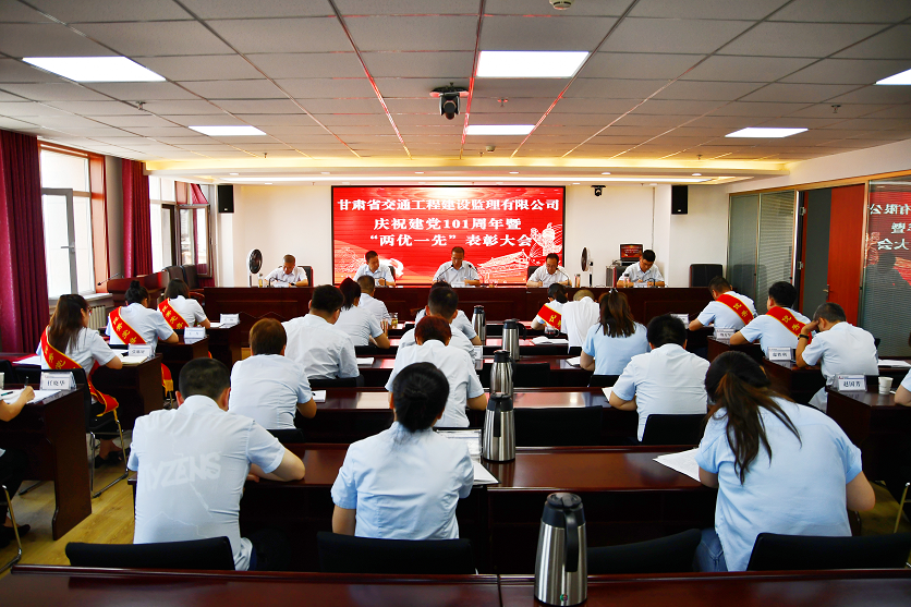 6月30日,甘肅省交通工程建設(shè)監(jiān)理有限責(zé)任公司召開慶祝建黨101周年暨“兩優(yōu)一先”表彰大會(huì)。交通監(jiān)理公司領(lǐng)導(dǎo)班子成員,機(jī)關(guān)及子公司全體黨員、中層干部,受表彰的先進(jìn)集體和優(yōu)秀個(gè)人代表共計(jì)30余人在主會(huì)場(chǎng)參加表彰大會(huì),各項(xiàng)目機(jī)構(gòu)在分會(huì)場(chǎng)參會(huì)。會(huì)議由交通監(jiān)理公司黨委副書記、總經(jīng)理丁峰主持。