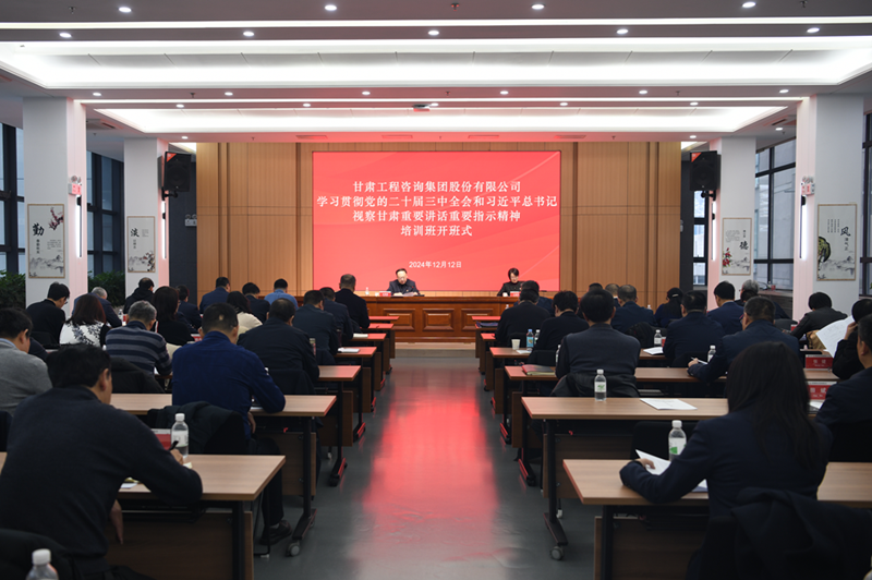 12月12日,甘肅工程咨詢集團(tuán)學(xué)習(xí)貫徹黨的二十屆三中全會和習(xí)近平總書記視察甘肅重要講話重要指示精神培訓(xùn)班開班。集團(tuán)公司黨委副書記、總經(jīng)理張佩峰出席開班式并講話,黨委副書記王春燕主持開班式。