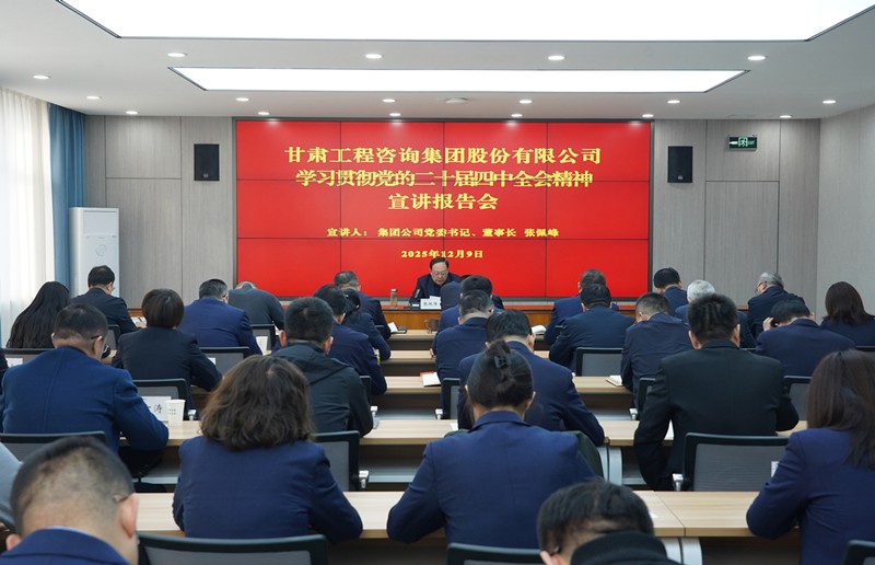 12月9日,甘肅工程咨詢集團(tuán)召開學(xué)習(xí)貫徹黨的二十屆四中全會(huì)精神宣講報(bào)告會(huì)。集團(tuán)公司黨委書記、董事長(zhǎng)張佩峰作專題宣講報(bào)告,圍繞全會(huì)重大意義、核心要義及“十四五”發(fā)展成就、“十五五”時(shí)期目標(biāo)任務(wù)等進(jìn)行了系統(tǒng)闡釋,并結(jié)合集團(tuán)實(shí)際提出貫徹落實(shí)的思路舉措。