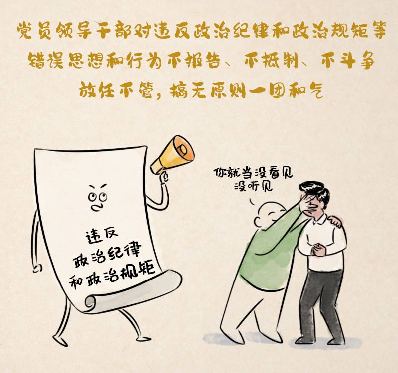第七十五條 黨員領(lǐng)導(dǎo)干部對(duì)違反政治紀(jì)律和政治規(guī)矩等錯(cuò)誤思想和行為不報(bào)告、不抵制、不斗爭(zhēng),放任不管,搞無原則一團(tuán)和氣,造成不良影響的,給予警告或者嚴(yán)重警告處分;情節(jié)嚴(yán)重的,給予撤銷黨內(nèi)職務(wù)或者留黨察看處分。