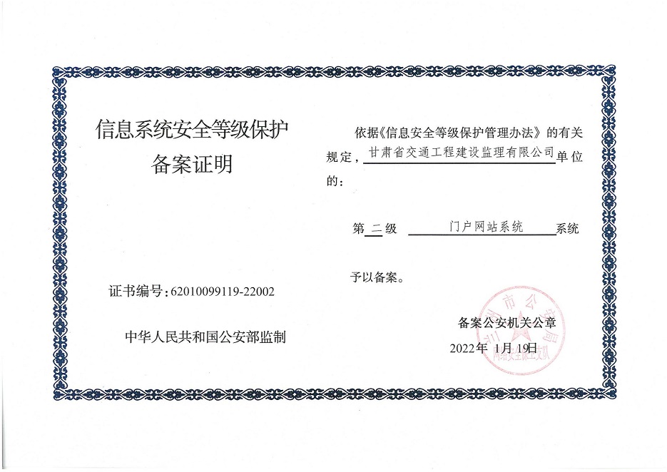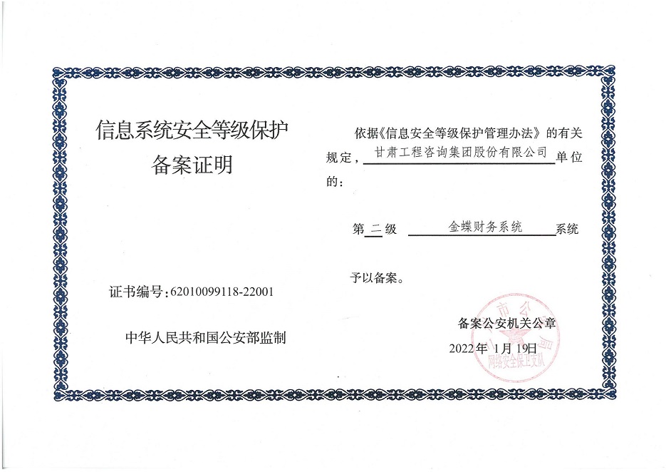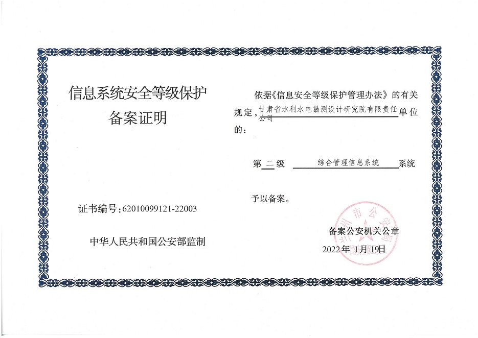 自工作開展以來(lái),相關(guān)子公司積極貫徹落實(shí)集團(tuán)公司工作舉措,集團(tuán)本部、建筑設(shè)計(jì)院、水電設(shè)計(jì)院、土木工程院、招標(biāo)咨詢集團(tuán)、交通監(jiān)理公司合計(jì)16個(gè)信息系統(tǒng)已順利完成信息系統(tǒng)安全等級(jí)保護(hù)2.0測(cè)評(píng)備案工作,并獲得監(jiān)管部門頒發(fā)的《信息系統(tǒng)安全等級(jí)保護(hù)備案證明》。通過(guò)此次等級(jí)保護(hù)2.0測(cè)評(píng)工作,集團(tuán)公司網(wǎng)絡(luò)和重要的信息數(shù)據(jù)系統(tǒng)的安全防護(hù)和保障能力得到進(jìn)一步提升,為推動(dòng)集團(tuán)公司數(shù)字化轉(zhuǎn)型工作打下堅(jiān)實(shí)的基礎(chǔ)。