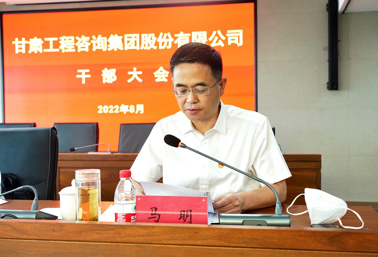 8月2日,甘肅工程咨詢集團召開干部大會,宣布省委關(guān)于集團黨委主要負責(zé)人任免決定:馬明同志任甘肅工程咨詢集團股份有限公司黨委書記,宋忠慶同志不再擔(dān)任甘肅工程咨詢集團股份有限公司黨委書記職務(wù)。