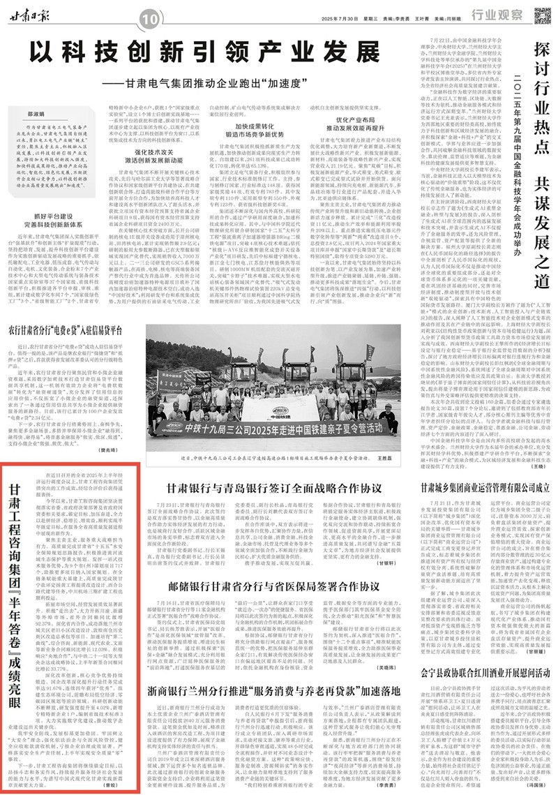 拓展市場空間,經營發(fā)展質效顯著躍升。積極“走出去”,大力開拓川渝、新疆等外埠市場,省外合同額同比激增92.37%。深化省內合作,成功落地蘭州市城關區(qū)老舊小區(qū)改造設計、敦煌南倉歷史街區(qū)改造總承包等項目。加速培育“第二曲線”,綜合咨詢、新能源、現(xiàn)代農業(yè)、文旅等新業(yè)務合同額同比增長12.03%。積極響應“央地合作”,與中鐵二十一局等大型央企達成戰(zhàn)略協(xié)議,上半年新簽合同額同比增長33.77%。