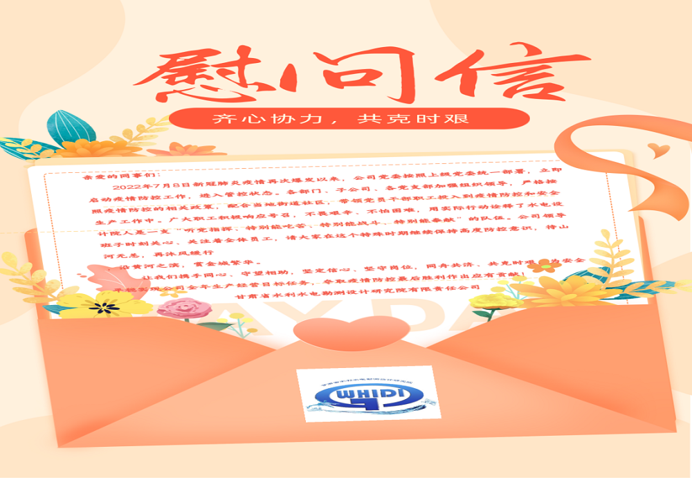 同時,注重加強人文關(guān)懷。水電設(shè)計院黨委對集中隔離的員工進行了一對一電話連線慰問,并向全體員工致信,對堅守一線員工、志愿者和居家辦公人員給予鼓勵,鼓舞大家消除不安緊張情緒,提振精神、鼓舞士氣,動員廣大員工積極配合和參與疫情防控,及時做好心理疏導(dǎo),保證員工隊伍情緒穩(wěn)定。