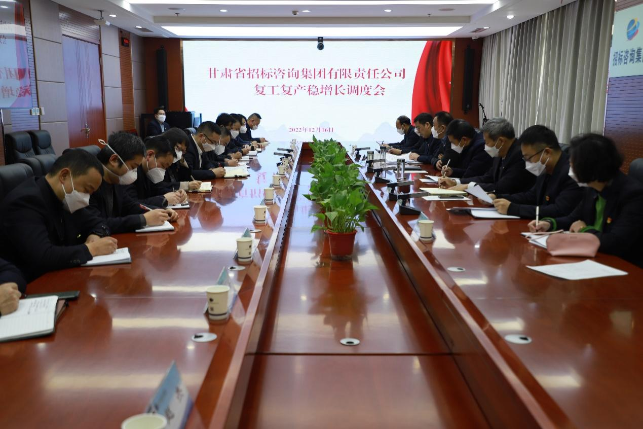近日,甘肅省招標(biāo)咨詢集團(tuán)有限責(zé)任公司召開復(fù)工復(fù)產(chǎn)穩(wěn)增長調(diào)度會(huì),傳達(dá)學(xué)習(xí)全省工業(yè)復(fù)工復(fù)產(chǎn)穩(wěn)增長調(diào)度會(huì)和集團(tuán)公司復(fù)工復(fù)產(chǎn)穩(wěn)增長調(diào)度會(huì)精神,分析1-11月生產(chǎn)經(jīng)營情況,安排部署近期及來年相關(guān)工作。會(huì)議由公司黨委書記、董事長牛茺主持。招標(biāo)咨詢集團(tuán)領(lǐng)導(dǎo)班子成員、機(jī)關(guān)各部門及各子公司負(fù)責(zé)人參加會(huì)議。招標(biāo)中心、金安公司作交流發(fā)言。
