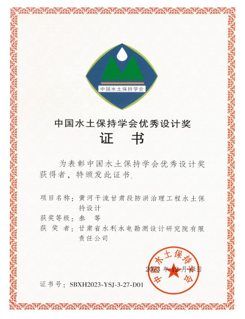 據(jù)悉,這是繼《甘肅省引洮供水一期工程水土保持設(shè)計(jì)》獲第三屆中國(guó)水土保持學(xué)術(shù)大會(huì)優(yōu)秀設(shè)計(jì)二等獎(jiǎng)后,再次喜獲此獎(jiǎng)項(xiàng)。中國(guó)水土保持學(xué)術(shù)大會(huì)制度自2018年建立以來,中國(guó)水土保持學(xué)會(huì)搭建了我國(guó)水土保持領(lǐng)域規(guī)模最大、水平最高的學(xué)術(shù)交流平臺(tái),現(xiàn)已成為中國(guó)水土保持學(xué)術(shù)交流的重要品牌。中國(guó)水土保持學(xué)會(huì)優(yōu)秀設(shè)計(jì)獎(jiǎng)每?jī)赡暝u(píng)選一次,主要獎(jiǎng)勵(lì)我國(guó)在水土保持規(guī)劃與設(shè)計(jì)領(lǐng)域中技術(shù)先進(jìn)、成效顯著、理念創(chuàng)新的項(xiàng)目成果。