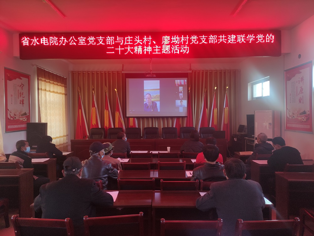 為持續(xù)促進(jìn)黨的二十大精神學(xué)習(xí)貫徹走深走實(shí),使黨的二十大精神進(jìn)村入戶、深入人心,11月22日,甘肅省水利水電勘測設(shè)計(jì)研究院有限責(zé)任公司辦公室黨支部與幫扶村西峰區(qū)莊頭村黨支部、廖坳村黨支部開展共建聯(lián)學(xué)黨的二十大精神主題活動(dòng)。